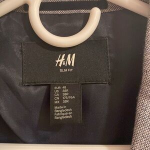 H&M men’s Blue Gray Tweed Blazer Sportcoat Jacket with elbow patches slim fit 38R