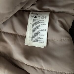 In great condition with minor signs of wear. Attached hood with drawstring, two large external pockets and a pocket on each sleeve. Zipper and snap button closure. Color is an olive green with tan interior lining.
