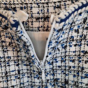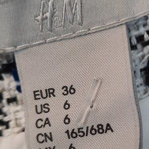 H&M navy, white and black tweed texturized mini skirt with fringe, size 6