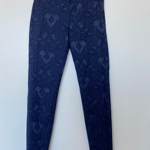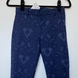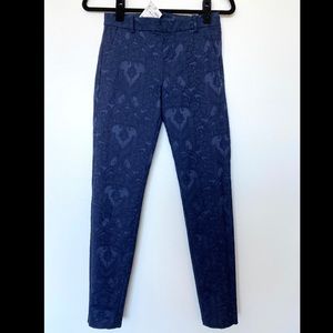 Navy Damask pattern H&M skinny pants. Side zip closure.