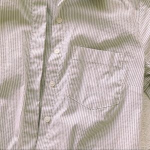 White button down with think black pinstripes. White buttons. Basically brand new. In perfect condition. Very professional!