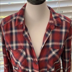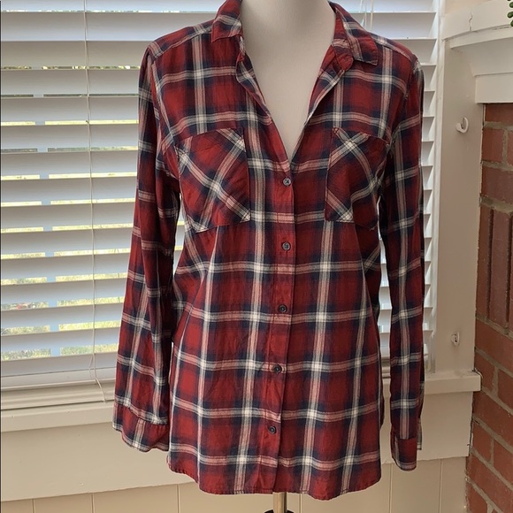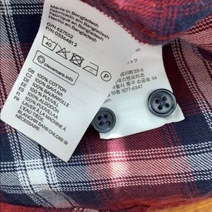 Excellent condition. Has 2 extra buttons on tag still. Burgundy, navy and white