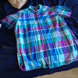 Short sleeve fitted plaid shirt from H&M. Front pocket.