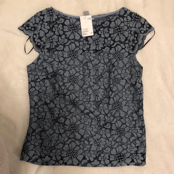 Light blue patterned lace top with cap sleeves