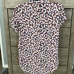 H&M purple print shift dress. Sewn cuffed sleeves. V neck. High low dolphin hem. Approx 31 in in front and 34 in back. Size US 4.