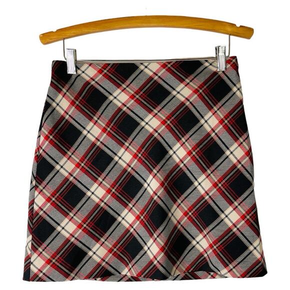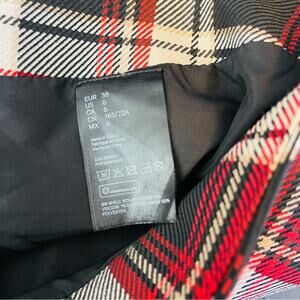 H&M red black tan plaid preppy academia holiday Christmas mini skirt 6