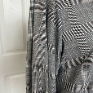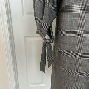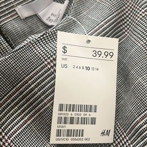 H&M blk, rd, & wht plaid midi dress. Short sleeve that tie. Back button. 63% Polyester, 34% viscose, 3% Elastane. New with tags. For dress or work or casual.