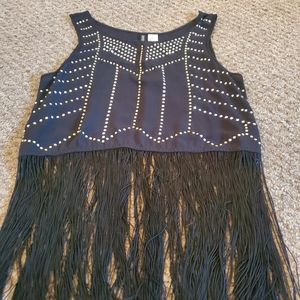 This is the perfect tank top for festivals! New with Tags. Super fun fringe bottom and rhinestone details on the front