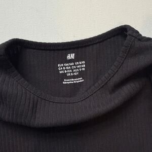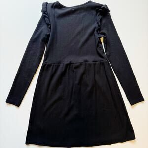 H&M ribbed black dress long sleeve ruffled shoulders size 8/10Y