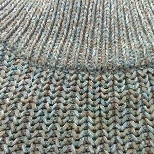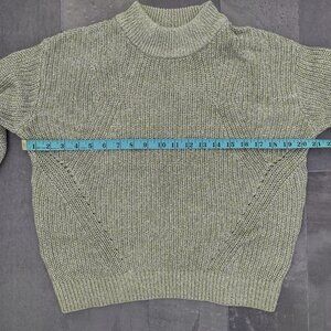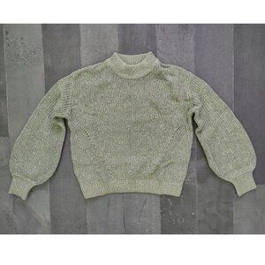 Gorgeous sage green sweater by H&M. Cotton blend. Mock neck, balloon sleeves. Variegated color yarn with metallic thread.