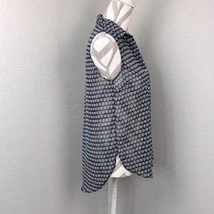 H&M sheer sleeveless blouse button down blue and white size 2