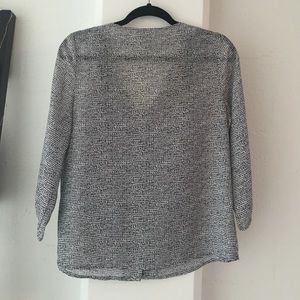 Black and white print sheer top. V-neck and 3/4 sleeve