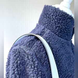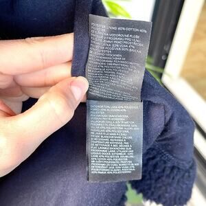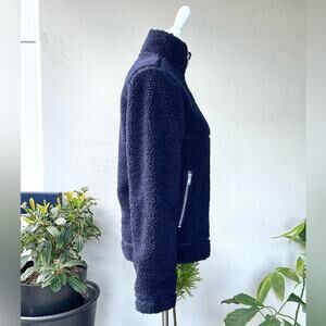 H&M wool- blend teddy jacket in Navy Blue. Size XS. I'm selling because it doesn't fit me after I gained a couple of pounds. But it's pretty warm.