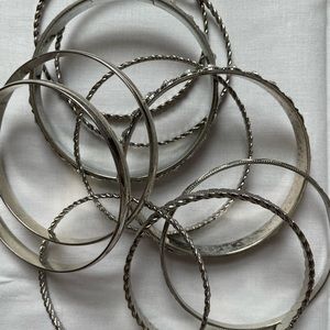 Add the final touch to your perfect outfit with these stackable silver bracelets.
