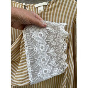 H&M size 10 mustard yellow striped top with bell sleeves wide lace cuffs