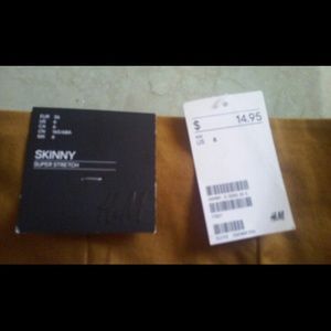 NWT H&M skinny jean leggings. The color is an ochre-camel color. Side zip, no back pockets, skinny leg. Great with a tunic. Fabric content 66% cotton, 32% polyester, 2% elastane. Size is an H&M 36, which fits like a 2 even though it says "US 6".