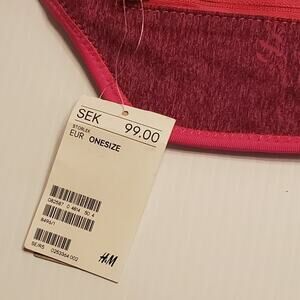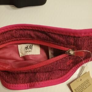 H&M sport waist belt bag fanny pack New with tag. UPC 08258704814504. Bright pink. Shell 87% Polyester, 13% Elastane, LIning 100% polyester. Waist size adjustable.