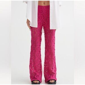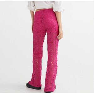 EUC H&M straight leg crocheted pants in hot pink size L. Soft, crochet-look pants with a regular waist. Concealed elastic at waistband, concealed zipper at back, and straight legs. Jersey lining at top.