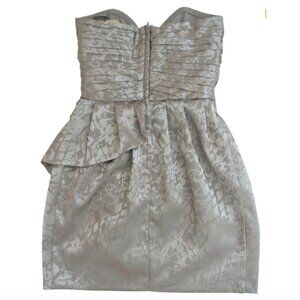 H&M strapless asymmetric mini dress with ruched bodice, pleated skirt and peplum at back.