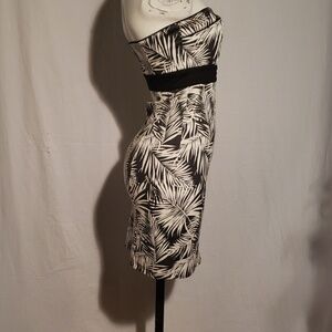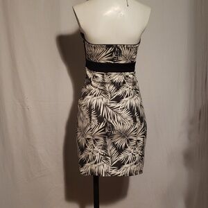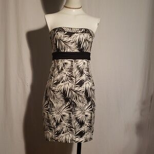 Beautiful preowned H&M strapless mini dress black and white size 2 in great condition missing the button on the top of the zipper but in great condition