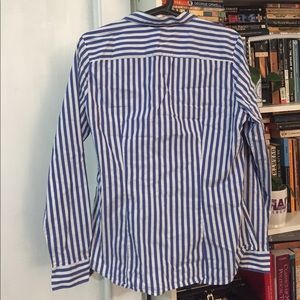 Classic women's button down. Blue and white stripes. H&M size 14 (Probably closer to a 8-10 in other brands). Comfortable material with good stretch. I have this shirt listed in two other colors if you want to bundle! Like new, worn a couple times.