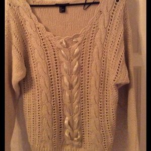 Cream color cute sweater. Size small, but it's made large.