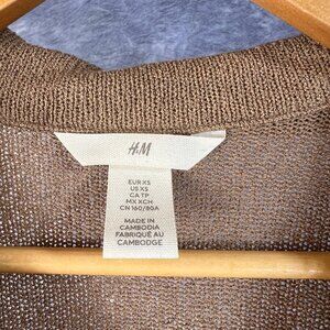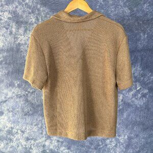 H&M Tan Collared Sweater Polo Style V-Neck Short Sleeve Polyester / Viscose Blend Sz XS Measurements (lying flat): Underarm to underarm: 18 1/2" Length: 21"