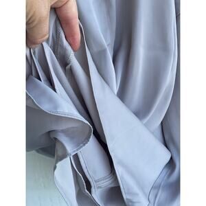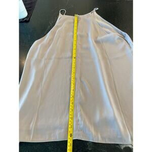 in new condition, NWOT. Silky and flowy. The color is mostly taupe but in certain light it looks more gray, sometimes more purple hued but in reality it is a taupe color. thin spaghetti straps, round neck, back button at keyhole necklline. fully lined.