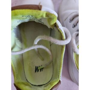 1 shoe has a scratch and the interior is a neon green- we went to alien festival in Roswell and they had a green foam machine. Little did i know it would color our clothes. It does come out i just dont know what cleaning agent to use - it came out of my other clothing but not this for some reason
