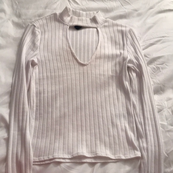White top from H&M, V-neck opening on the front of shirt