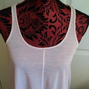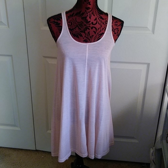 H&M tunic top. Dusty pink and white stripes. Measures 35" from shoulder to hemline.