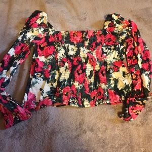 Floral print H&M top size medium, elastic smocking on the back, and pretty ruching on the chest in the front. It can be worn on or off the shoulders too. Only worn once