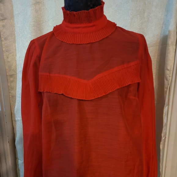 Red H&M sheer long sleeves turtleneck top