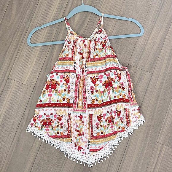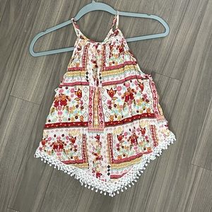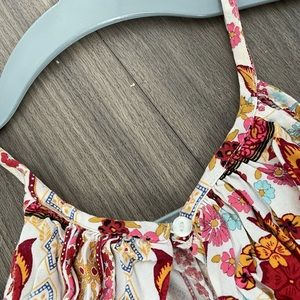 H&M women’s top is in excellent condition. Size M with a button closure at the back of the neck and comes with an extra button. Material: 100% viscose.