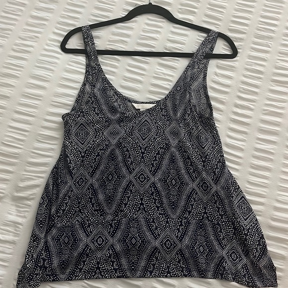Cute navy/white patterned top, can dress up or down, only worn a couple times—no signs of wear and tear