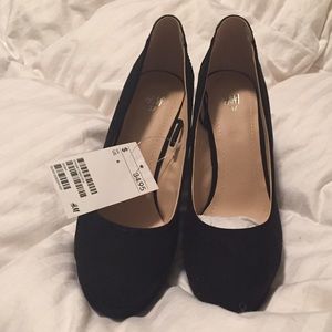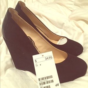 These gorgeous wedges are a black suede with a cute leather piece at the heel. Size 6 *Never Worn*