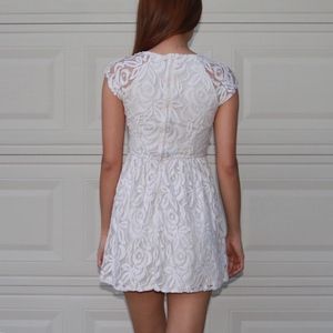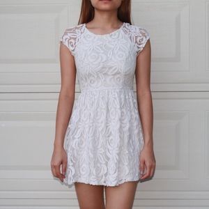 This super cute H&M dress is a great addition to your summer closet. IT has 2 layer. the white inner layer is stretchable. The outer one has net-like structure with white pattern decoration on it.