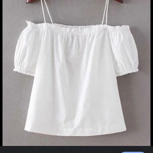 H&M white off the shoulder short sleeve sleeve top with straps to keep it up