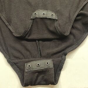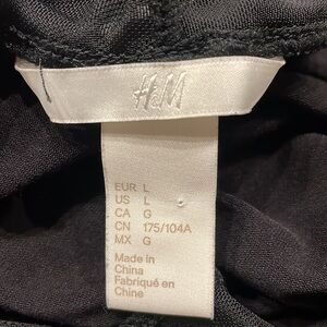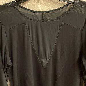 H&M women’s black jersey MESH Sheer V long sleeve bodysuit / leotard size L
