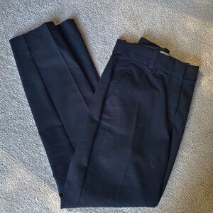 From H&M: Ankle-length slacks in woven stretch fabric. Regular waist, concealed elasticized waistband, and zip fly with concealed hook-and-eye fastener. Side pockets, mock back pockets, and tapered legs.