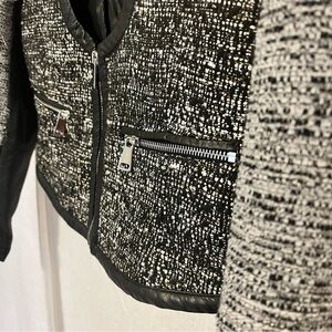 H&M women’s faux leather and tweed jacket with exposed zipper & low neck. Size 6