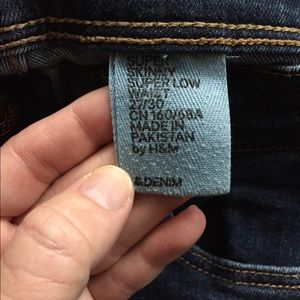 First pair is skinny/low waist size 27, second pair (darkest pair) is super skinny/super low waist size 27, and third pair (lightest pair) is skinny with zippers on the ankles. All fit more like a size 2. Bought pre-pregnancy and now don’t fit. VGUC.