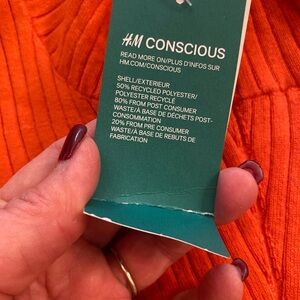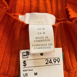 H&M women’s orange turtleneck ribbed knit sweater NEW poly stretchy cozy medium