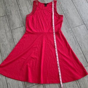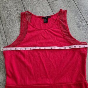 H&M women's simple red sleeveless a-line dress with subtle mesh sleeve design upper arms