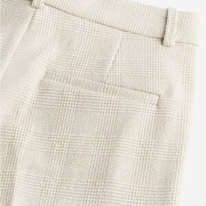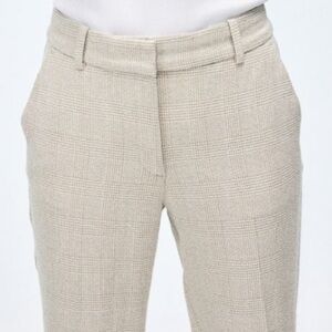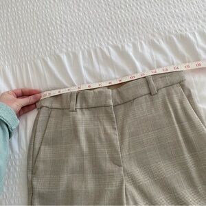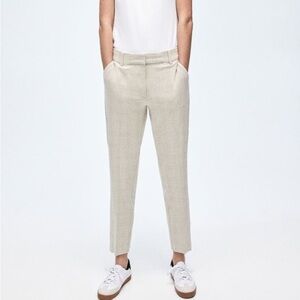 Website description: Ankle-length slacks in woven stretch fabric. Regular waist, concealed elasticized waistband, and zip fly with concealed hook-and-eye fastener. Side pockets, mock back pockets, and tapered legs.