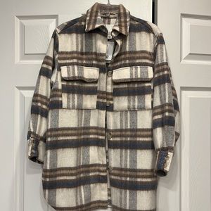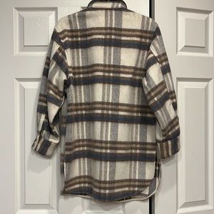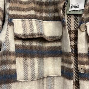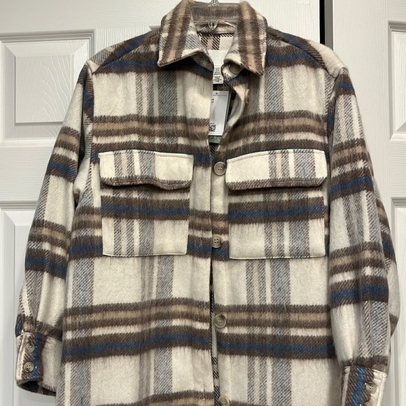 Wool button up shacket new from H&M. Blue, brown, tan, grey and cream wool. Fitted and warm.