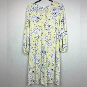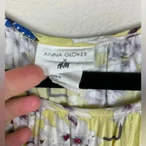 H&M x Anna Glover Women's 8 Textured-Weave Dress Light Yellow Floral Botanical