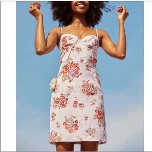 H&M x Brock Collection White Floral Fitted Linen Blend Mini Dress Women NWT
