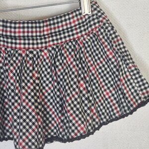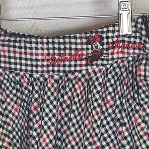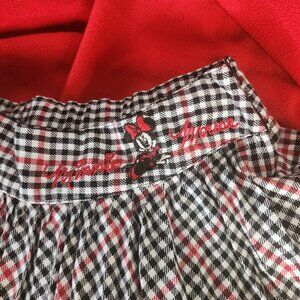 H&M x Disney Black Red White Minnie Mouse Embroid Plaid Adj Waist Pleat Skirt 2Y