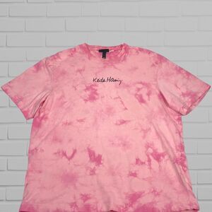 H&M x Keith Haring Mens T Shirt M Pink Relaxed Tie Dye Three Eyed Face Artist